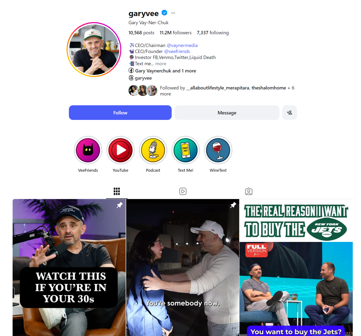 Another example is Gary Vaynerchuk, who, as mentioned, spans multiple platforms but leverages Instagram especially to reach a broad audience. Gary often shares short motivational clips and quotes on IG, packaged in a punchy, high-energy style that matches his persona. He’ll document his travels, client meetings, or even his garage-sale flips, turning seemingly mundane activities into lessons on hustle and gratitude. By consistently pumping out this content, he’s grown an enormous following. Gary’s Instagram acts as a front door; many young entrepreneurs discover him there via an inspiring Reel, then dive deeper into his YouTube or podcast. It’s a prime example of using IG for reach and influence, which then funnels to other platforms for deeper engagement.